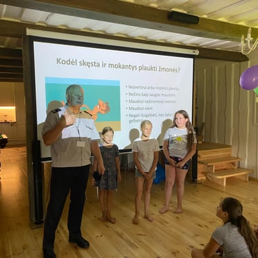 ”Ačiū už puikią stovyklą! Dukra grįžo pilna įspūdžių, labai patenkinta, kad dalyvavo Džiaugėsi visomis veiklomis, galimybe save išbandyti. Norės dalyvauti kitąmet”